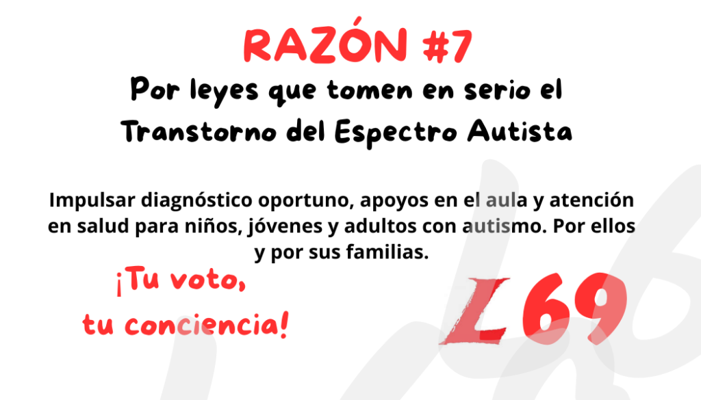 A través de mi futuro trabajo en el Senado buscaré Garantizar de manera efectiva, progresiva y verificable los derechos de las personas con TEA, mediante una política pública integral, articulada y sostenible que: